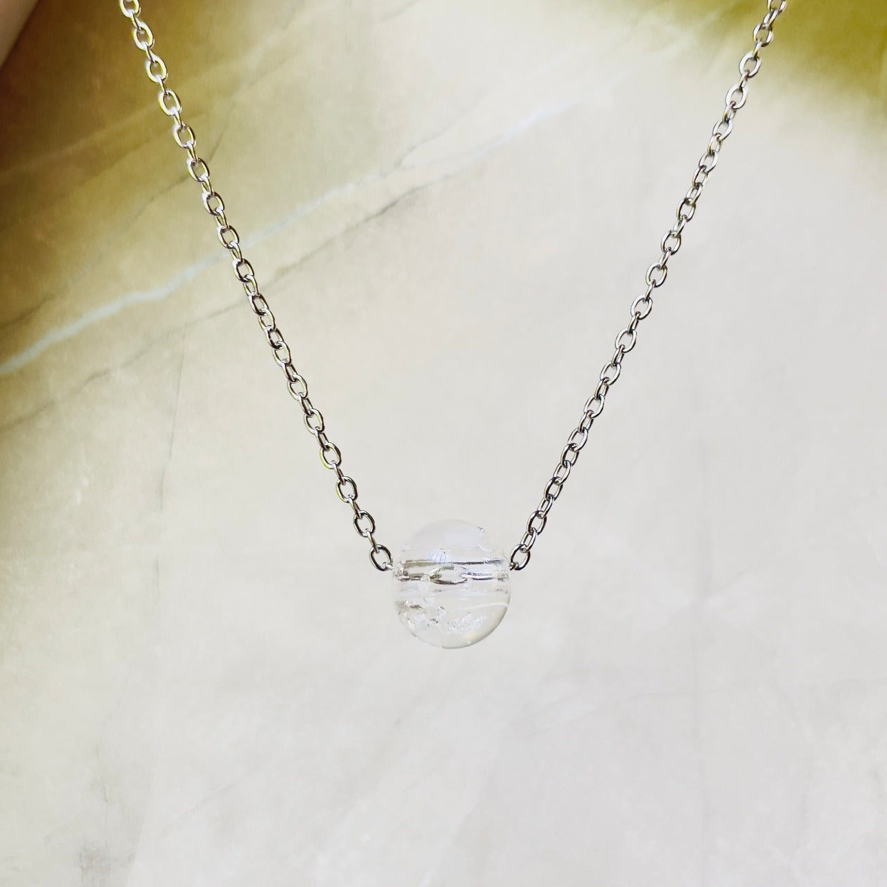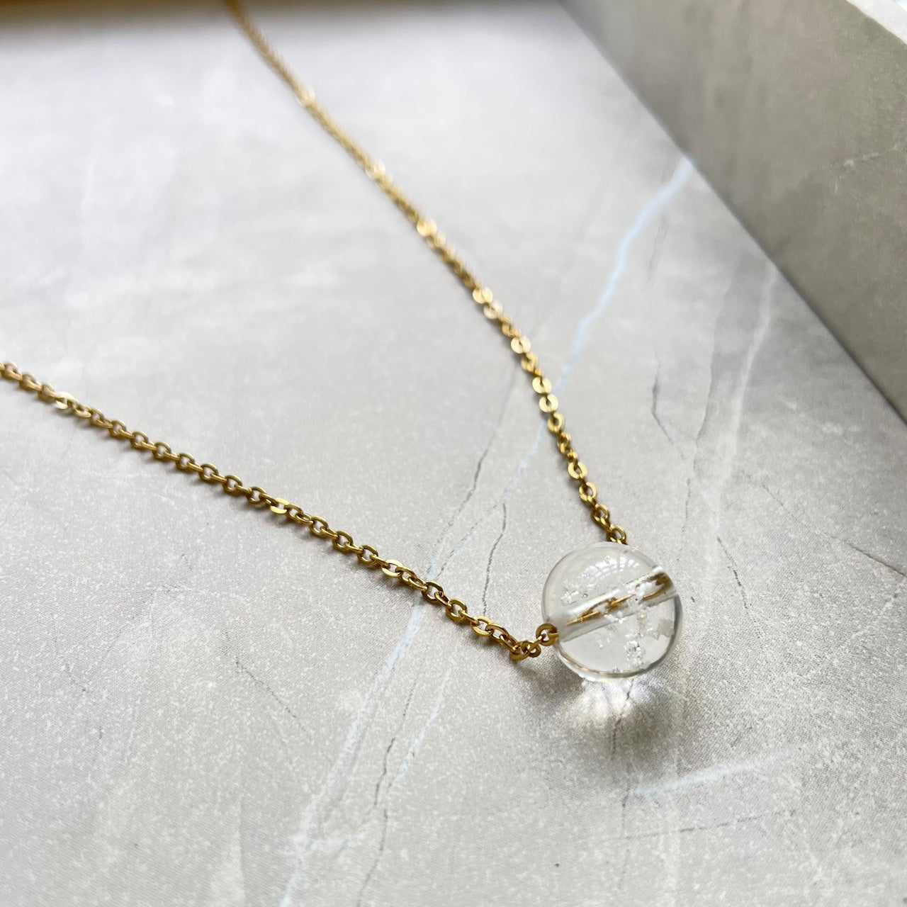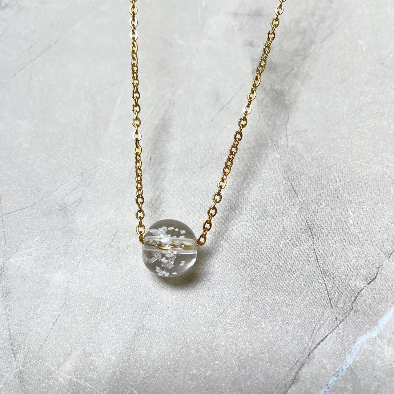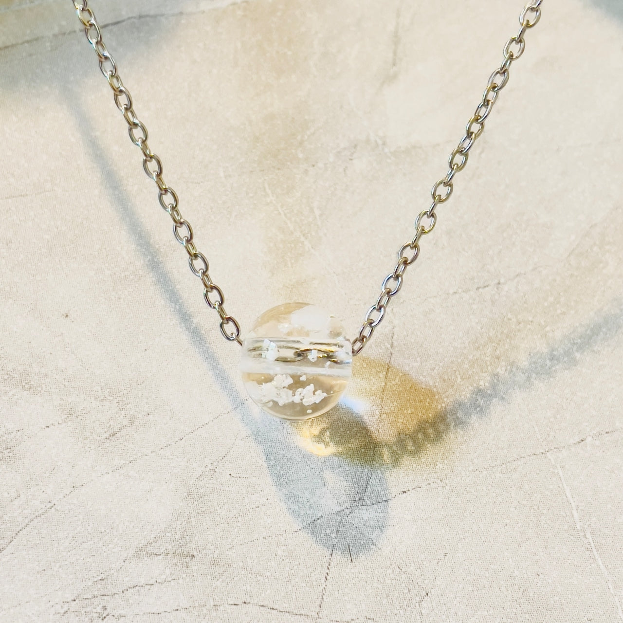 【素材】サージカルステンレス316L:【ゴールド】/【シルバー】チェーン長さ45cm+5cmアジャスター付き。10mm塩珠:ガラス素材