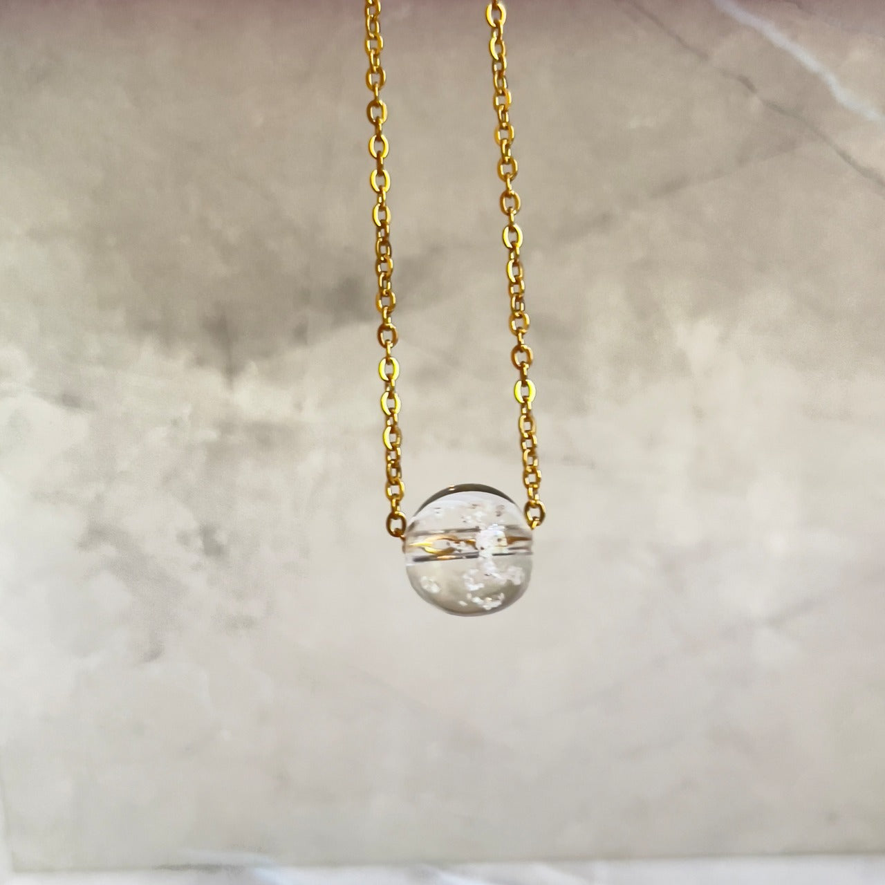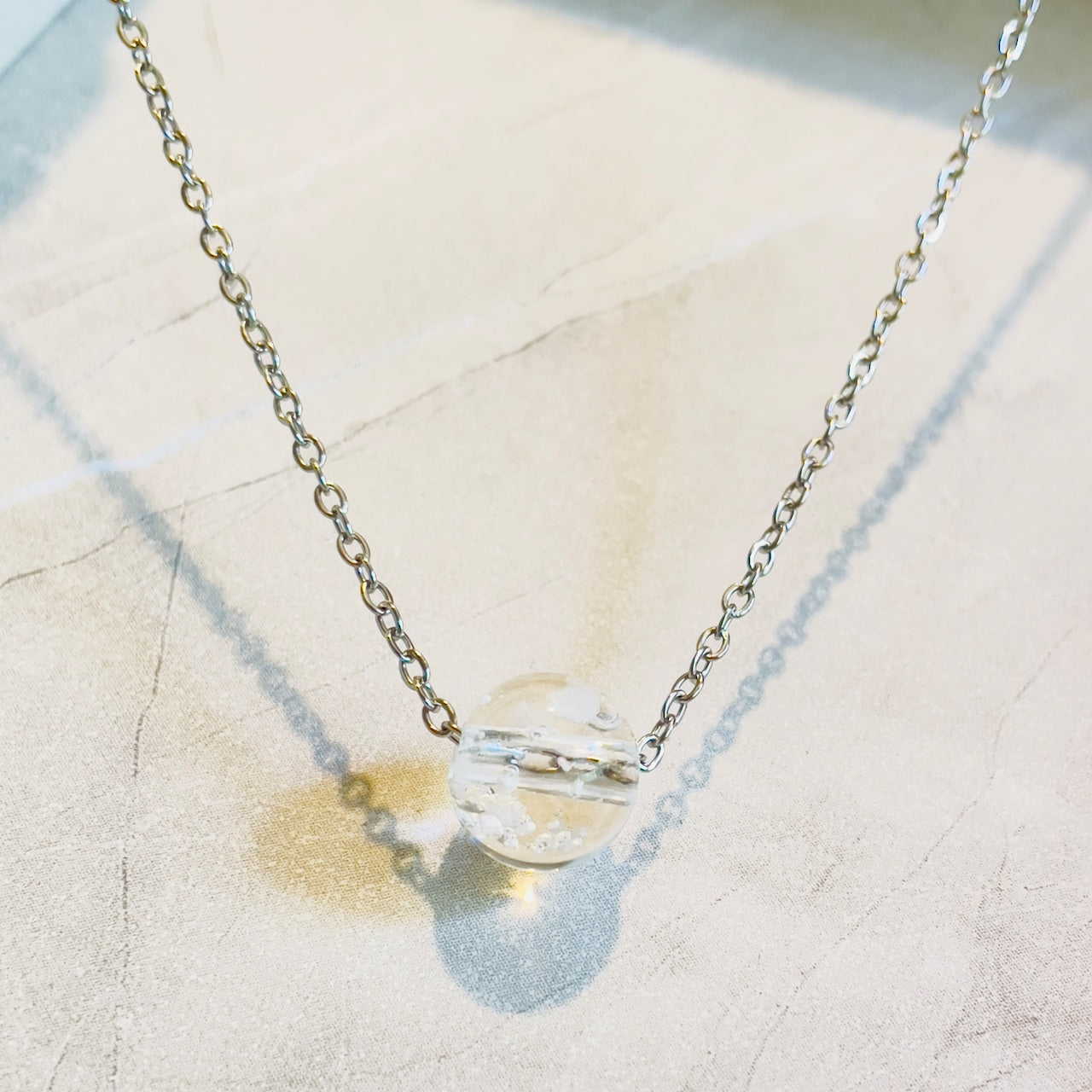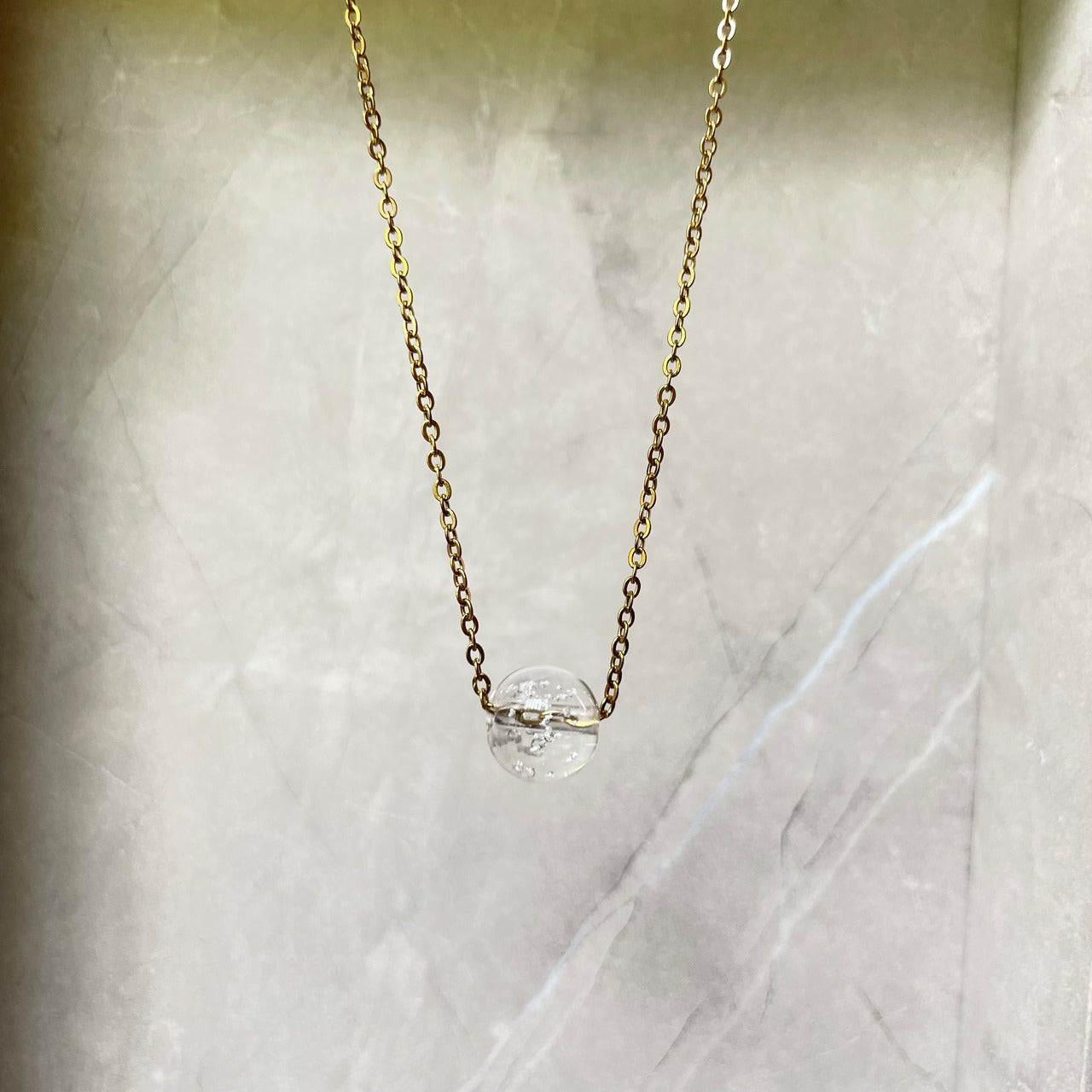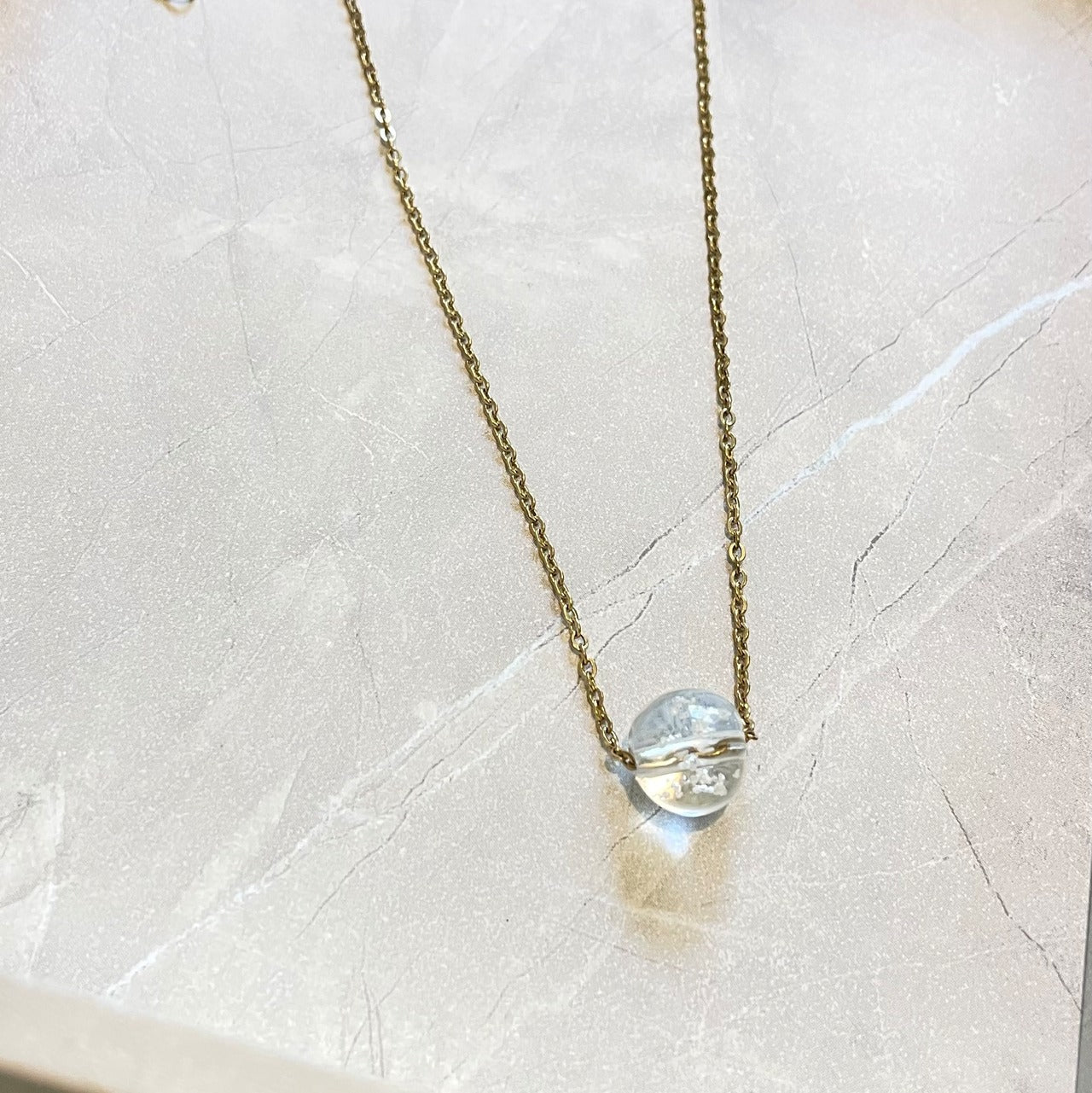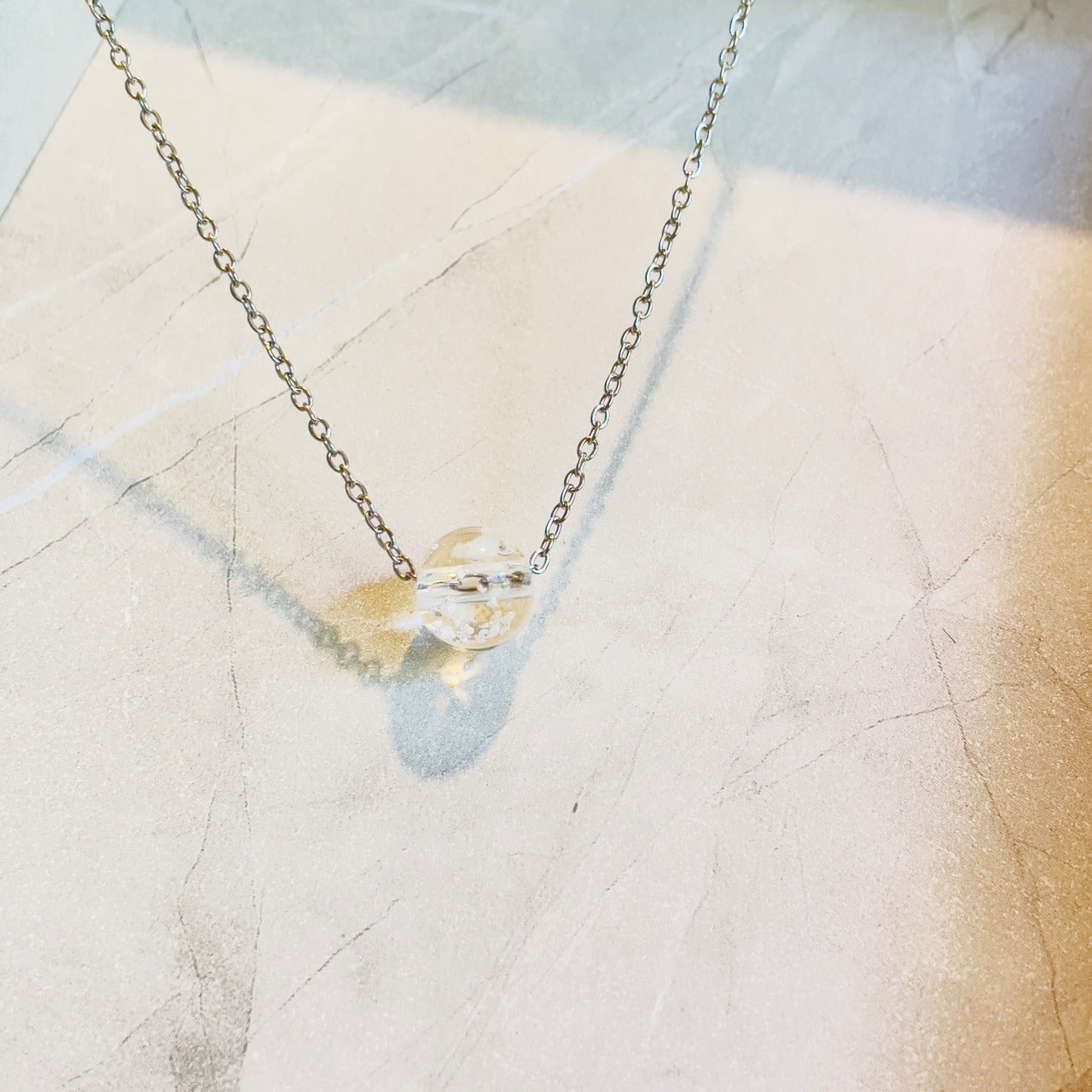【素材】サージカルステンレス316L:【ゴールド】/【シルバー】チェーン長さ45cm+5cmアジャスター付き。10mm塩珠:ガラス素材