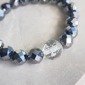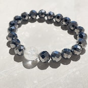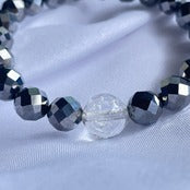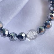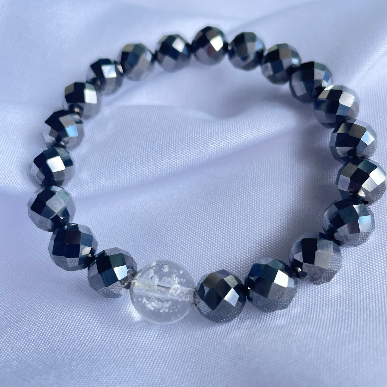 塩珠を囲むテラヘルツが、詳述かに光を放つ、手作りのお遺骨ジュエリーブレスレット。洗練されたデザインに、永遠の想いをそっと込めて。