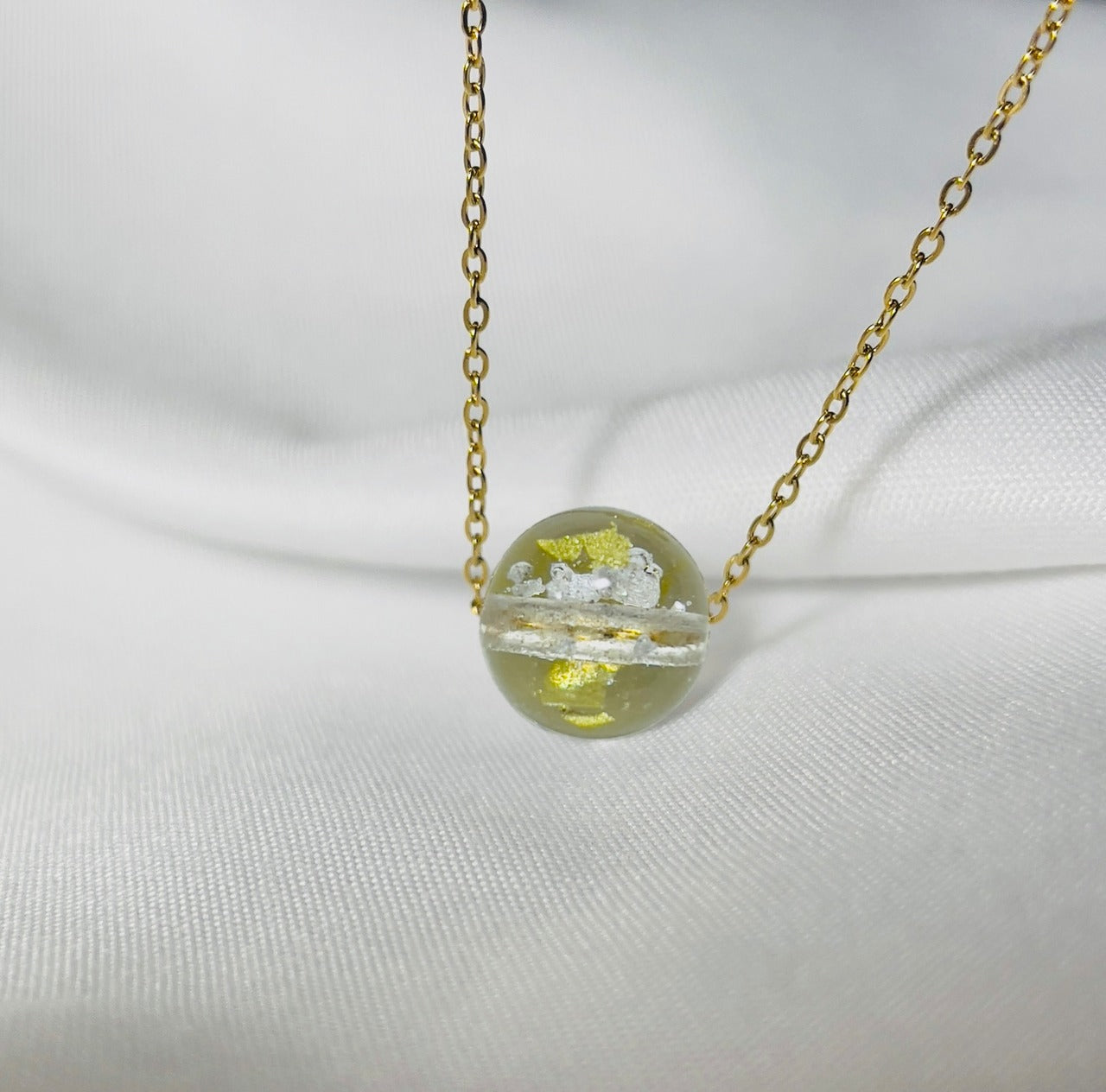 お遺骨入り24金箔入り塩珠(シオダマ)+ステンレスチェーン